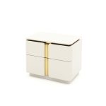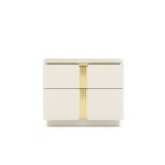 The Noah Bedside Table is an essential piece in any bedroom, offering not only functionality but also a touch of style. With two spacious drawers, it ensures that your essential items are always organized and within reach. Its minimalist and modern design blends seamlessly with the environment, while the gold details add a subtle and sophisticated touch of luxury. A perfect addition to transform your space with elegance and practicality.