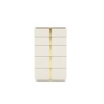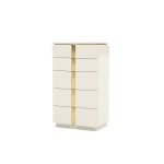 With an elegant and functional style, the Noah Tall Dresser is the missing piece to keep your Bedroom organized with a touch of sophistication. The spacious drawers are perfect for storing clothes, accessories, and small personal items, ensuring everything stays organized in a practical and accessible way. The gold detail in the center of the drawers reflects the luxury of this piece and adds personality to the space. The modern look and refined finishes make this Tall Dresser an ideal choice for those who seek to combine beauty and functionality in perfect harmony.