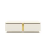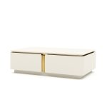 Mesa de Centro Retangular Branca com Tampo em Espelho Bronze
