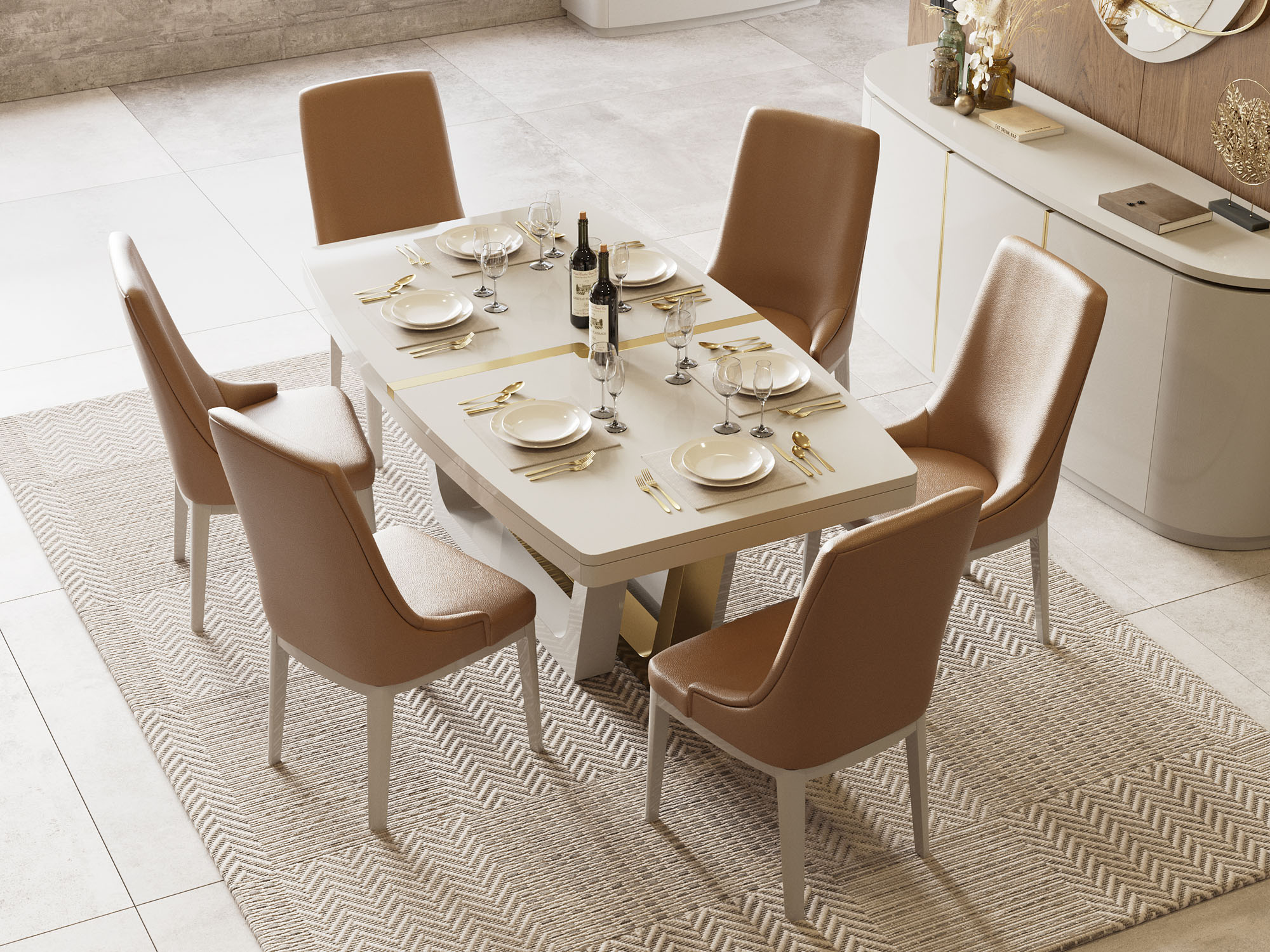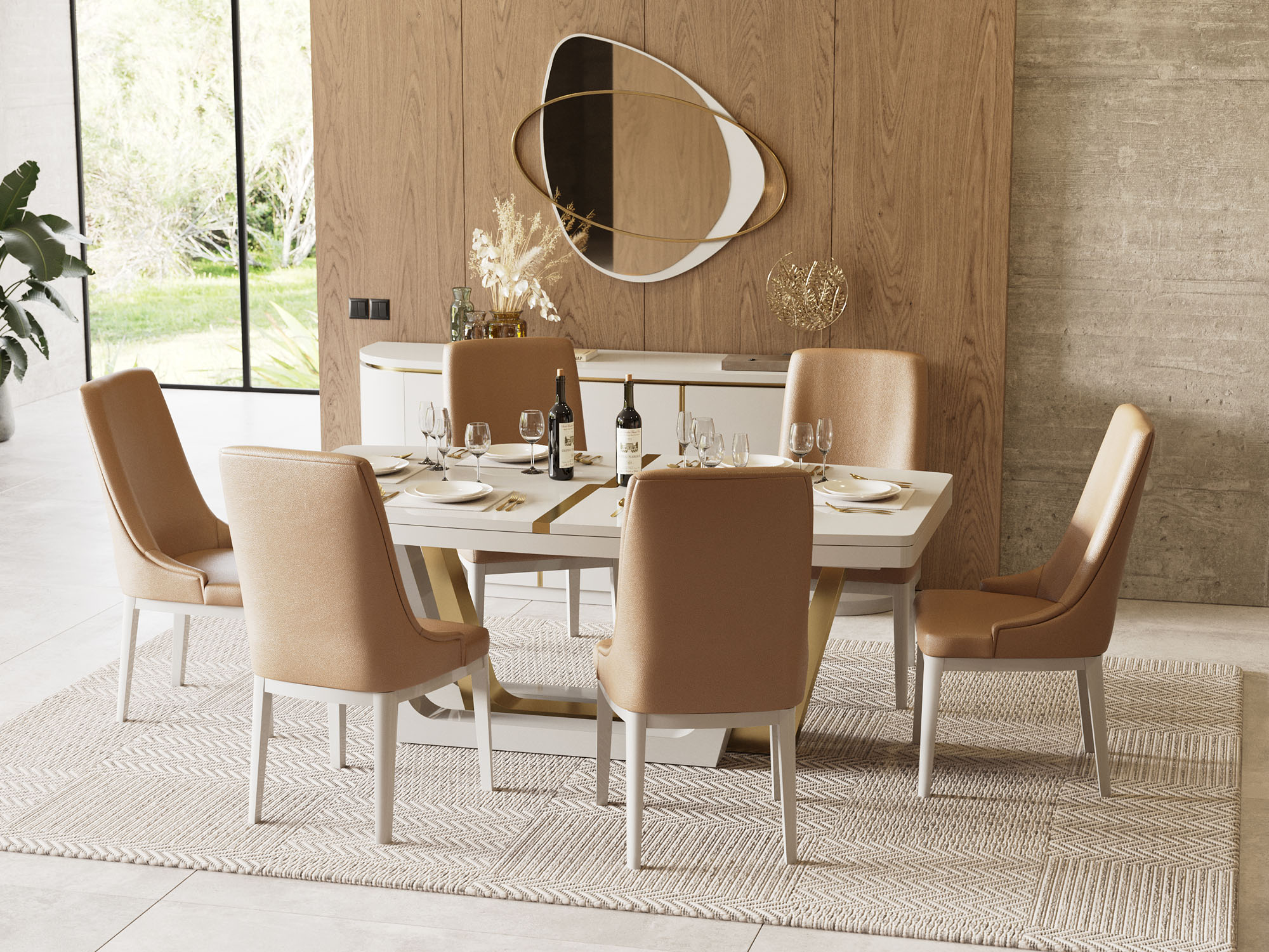 Cadeira alta, em tons claros. Este produto é sinónimo de elegância e conforto. Altamente personalizável ao nível dos acabamentos, pode escolher as cores e materiais que melhor combinam com a sua decoração.