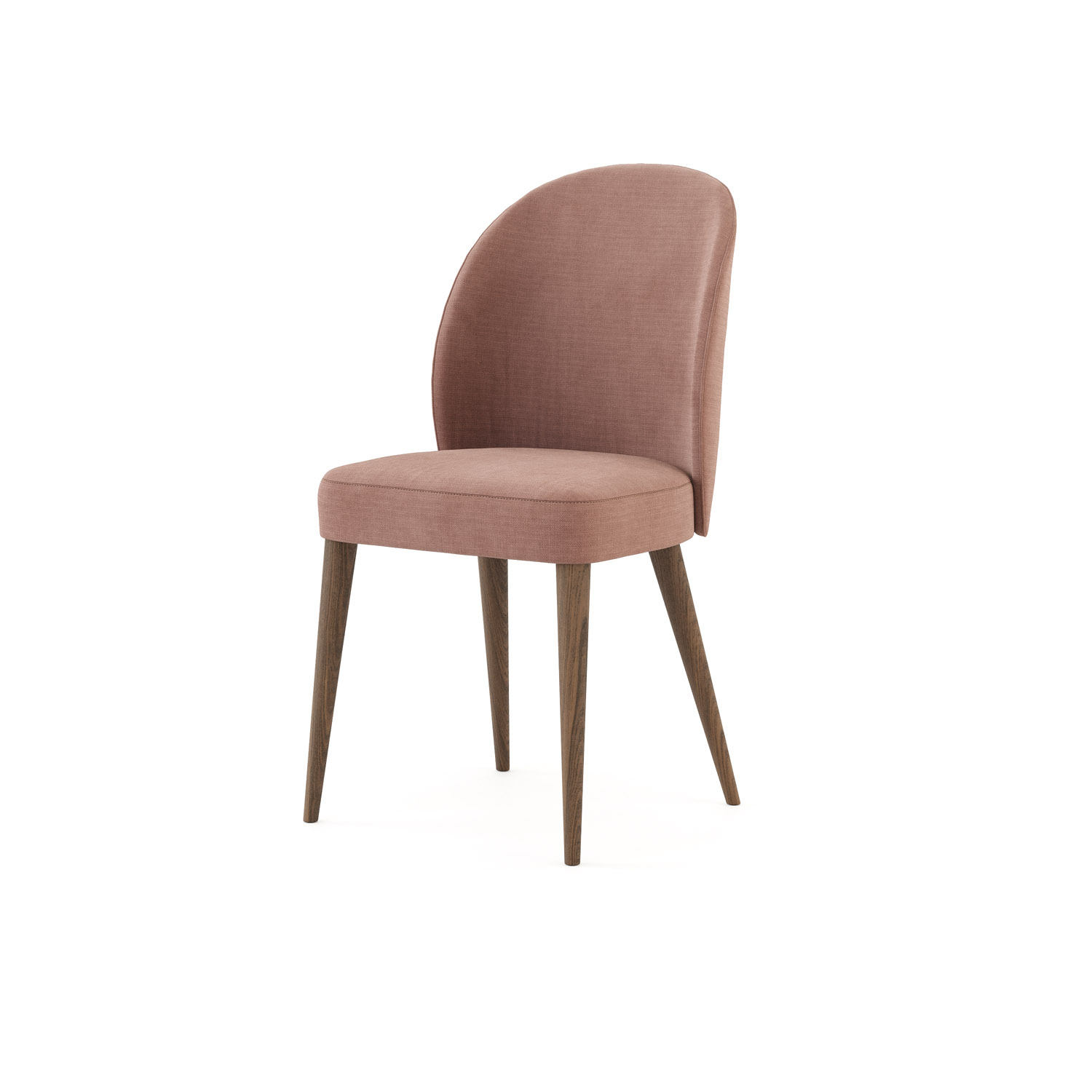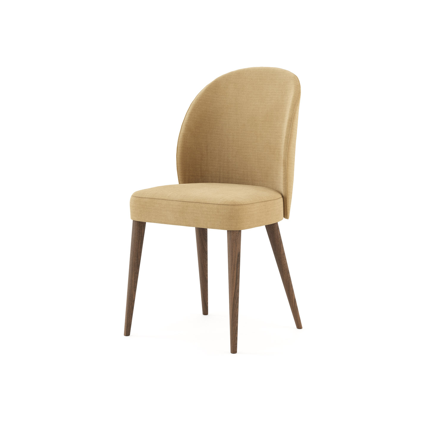Cadeira estofada em tom bege com pés em nogueira. Esta peça de design simples adapta-se à sua sala de jantar, escritório ou até quarto. Além da sua versatilidade, é muito confortável.